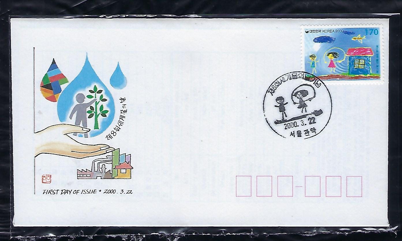 2000년 제8회 세계 물의 날 기념 우표 안내 카드 포함 초일 봉투(FDC)