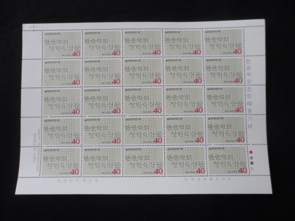 81년 한글학회 창립 60돌 우표 전지