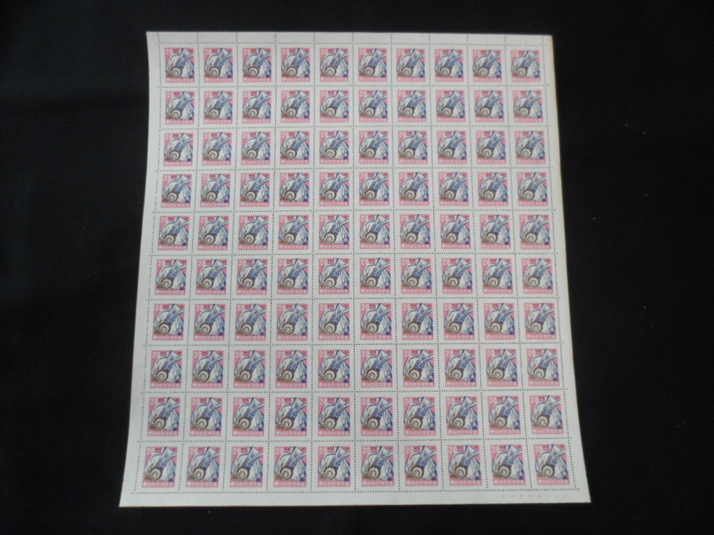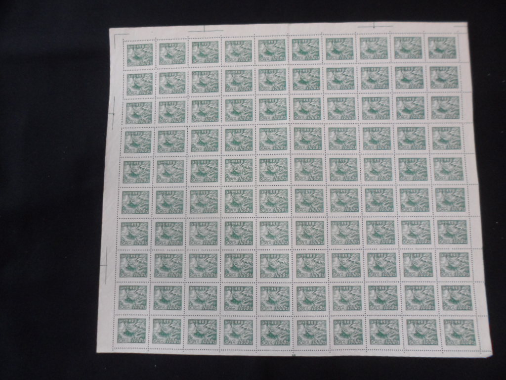 54년 환화 2차 보통 물결무늬 투문 용지10환 태극과 나비 우표 전지