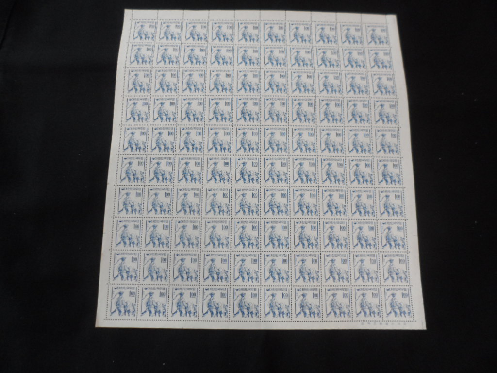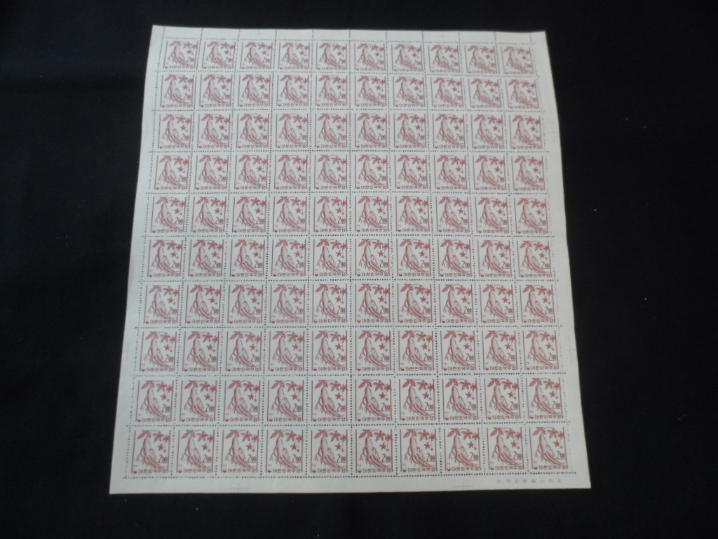 56년 엷은 발살무늬 용지 보통 1환 식목 우표 전지