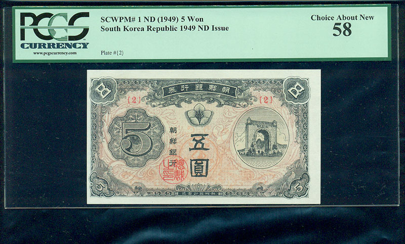 조선은행 신 5 원 제 2 판 PCGS 58