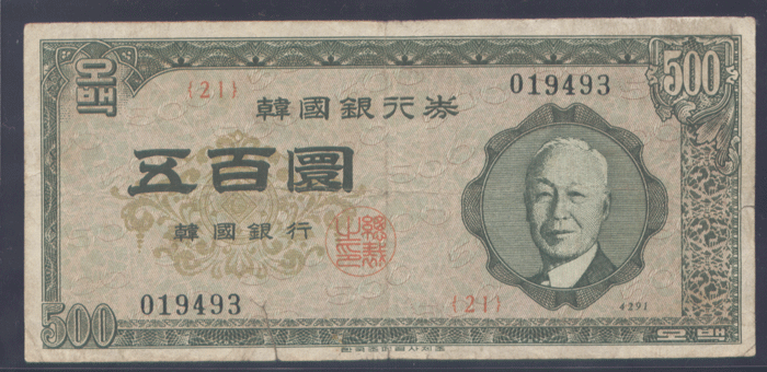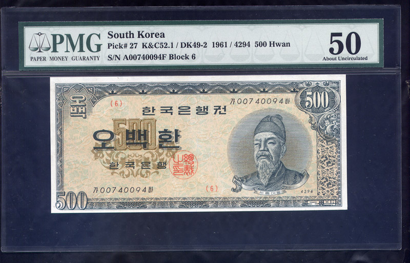 한국은행 개 500 환권 세종대왕 가007포인트 PMG 50