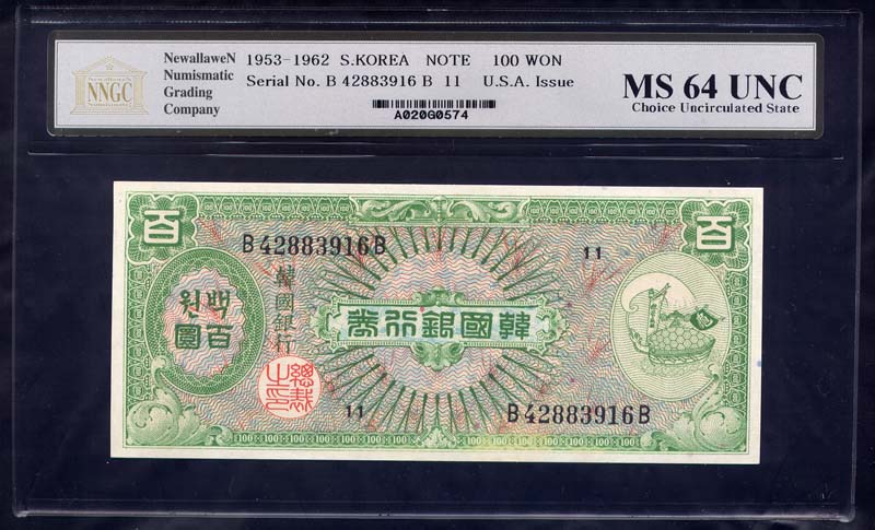 한국은행 10 환권 거북선 NNGC MS 66 UNC