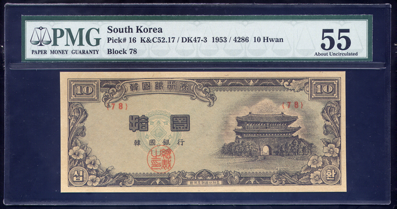 한국은행 신 10 환권-1황색지 PMG 55