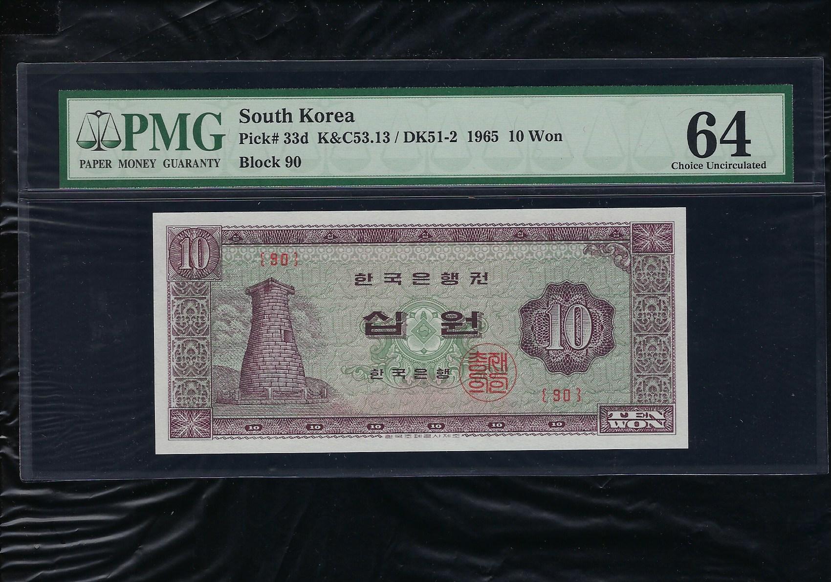 한국은행 나 10 원권 1965 년 제 90 판 PMG 64
