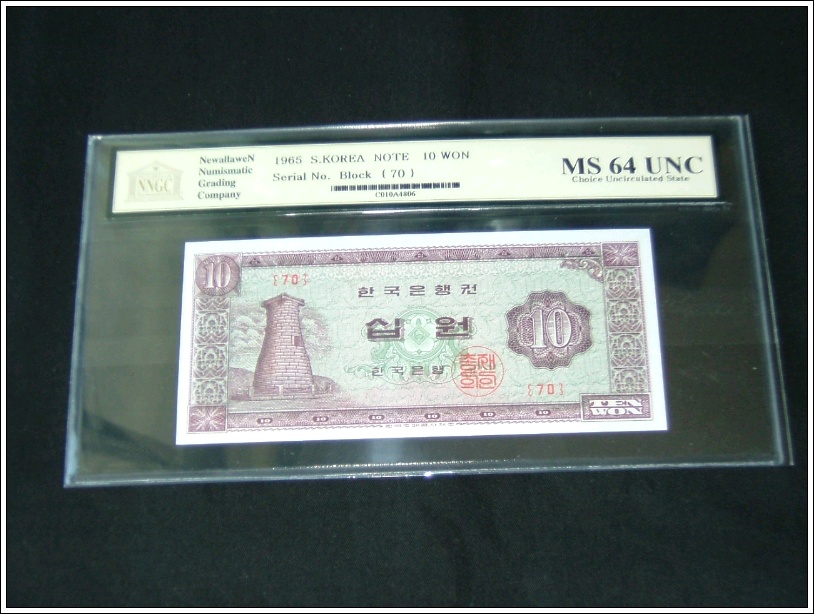 한국은행 나 10 원권 1965년 제70판 NNGC MS 64 UNC