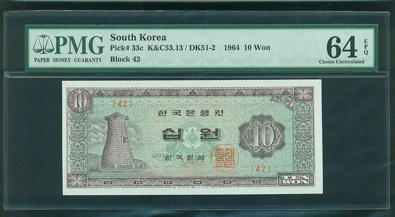 한국은행 나 10 원권 1964 년 제 42 판 PMG 64