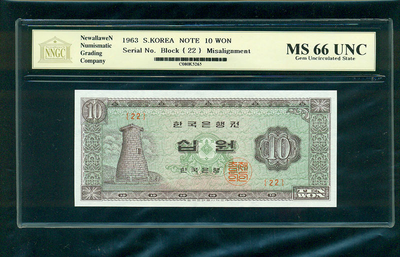 한국은행 나 10 원권 1963 년 제 22 판 NNGC MS 66 UNC