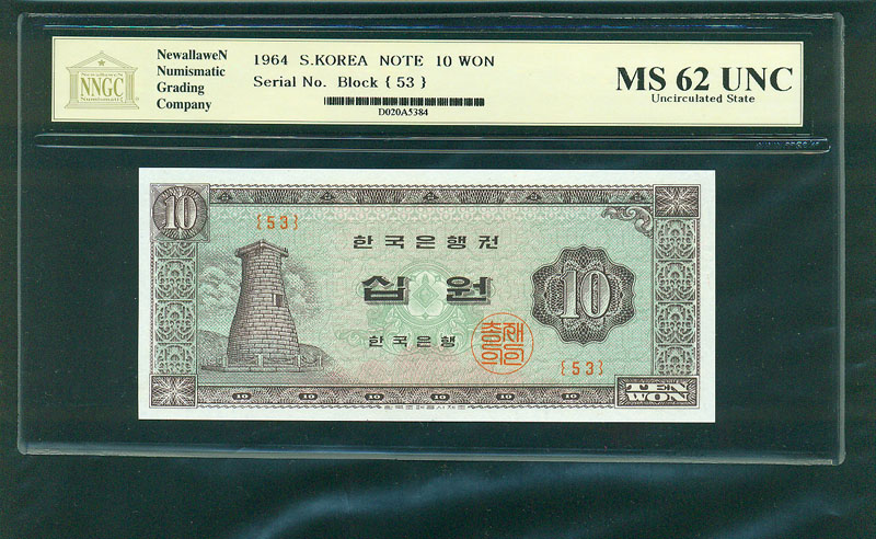 한국은행 나 10 원권 1964년 제53판 NNGC MS 62 UNC