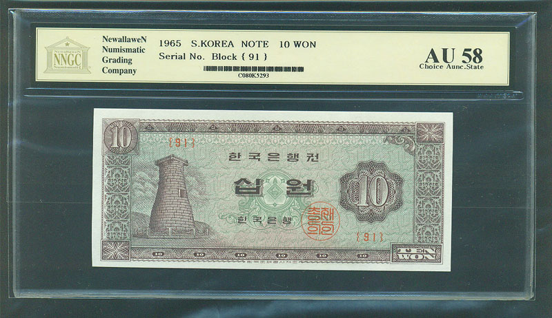 한국은행 나 10 원권 1965년 제 91 판 NNGC AU 58