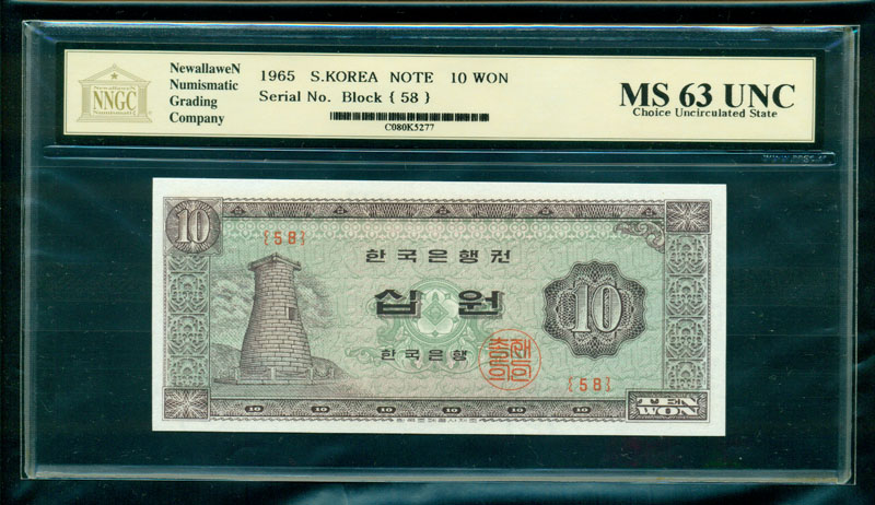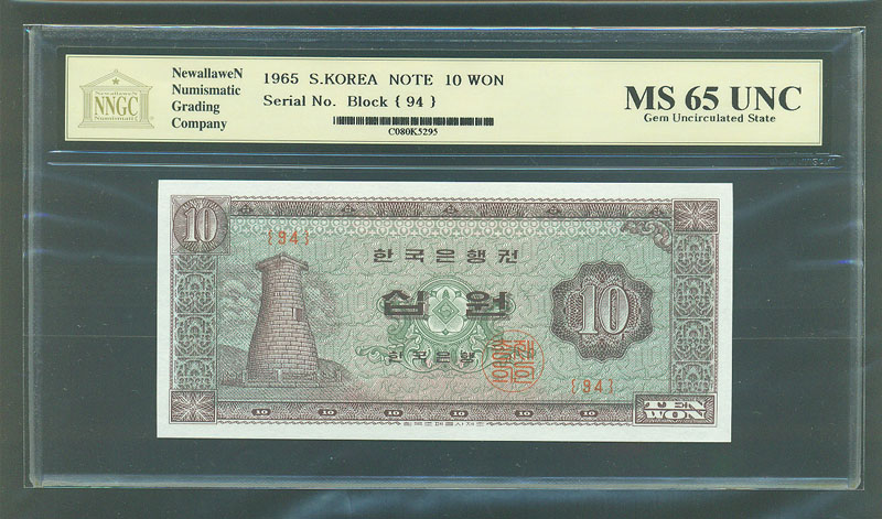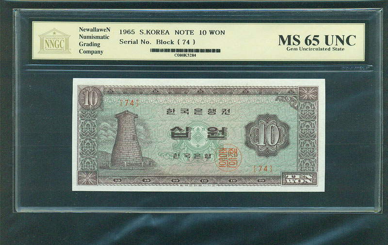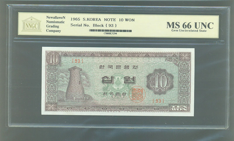한국은행 나 10 원권 1965 년 제 93 판 NNGC MS 66 UNC