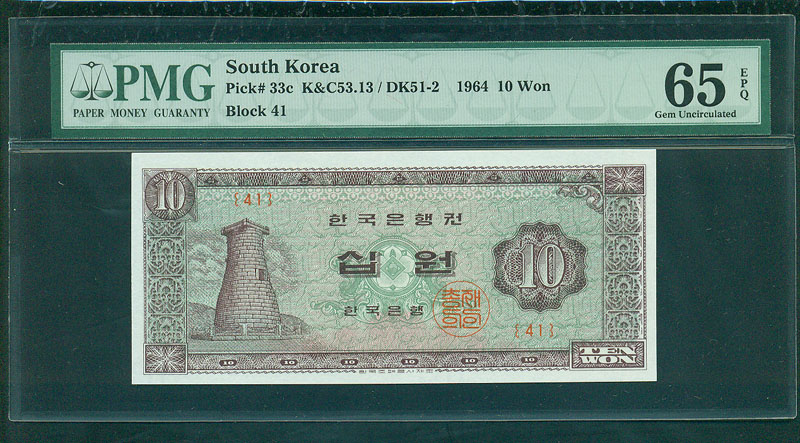 한국은행 나 10 원권1964년 제41판 PMG 65 EPQ