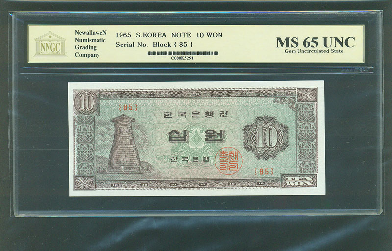 한국은행 나 10 원권 1965년 제85 판 NNGC MS 65 UNC