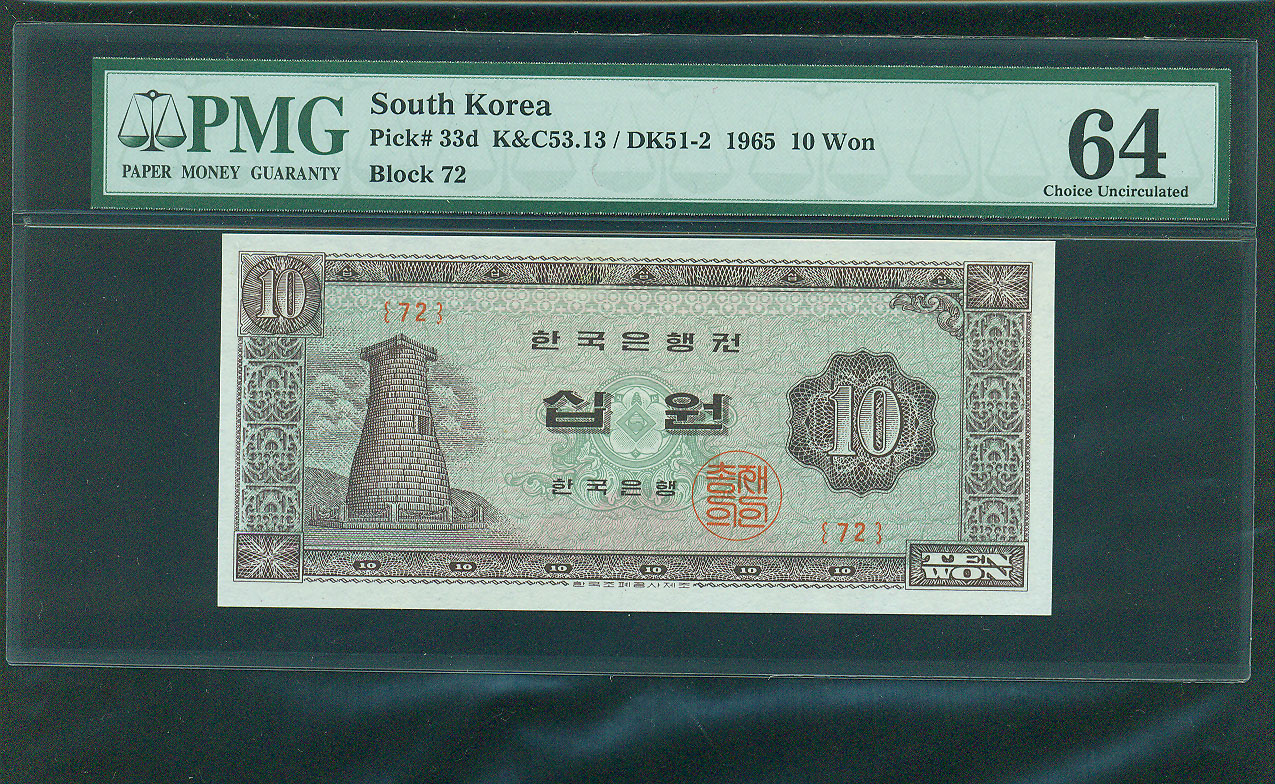 한국은행 나 10 원권 1965 년 제 72 판 PMG 64