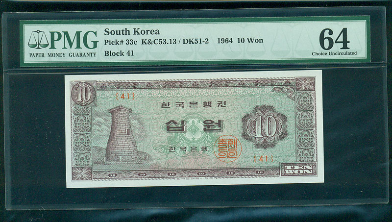 한국은행 나 10 원권 1964 년 제 41 판 PMG 64