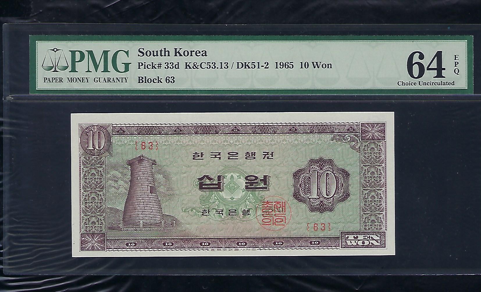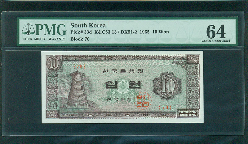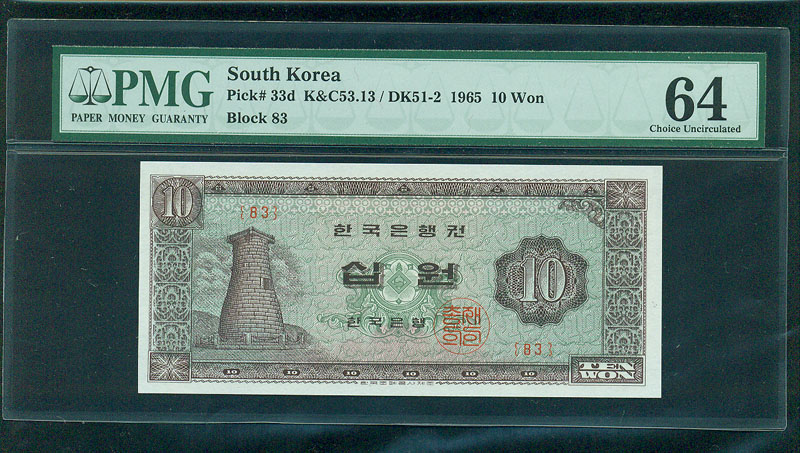 한국은행 나 10 원권 1965 년 제 63 판 PMG 64 EPQ