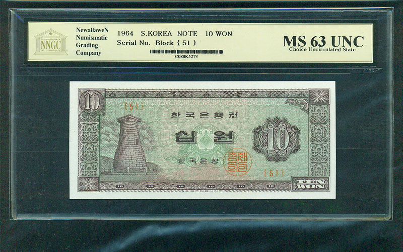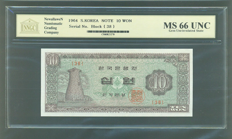 한국은행 나 10 원권 1964 년 제 38 판 NNGC MS 66 UNC
