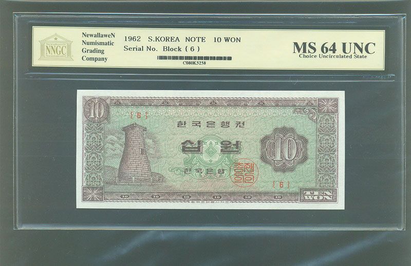 한국은행 나 10 원권 1962년 제 6 판 NNGC MS 64 UNC